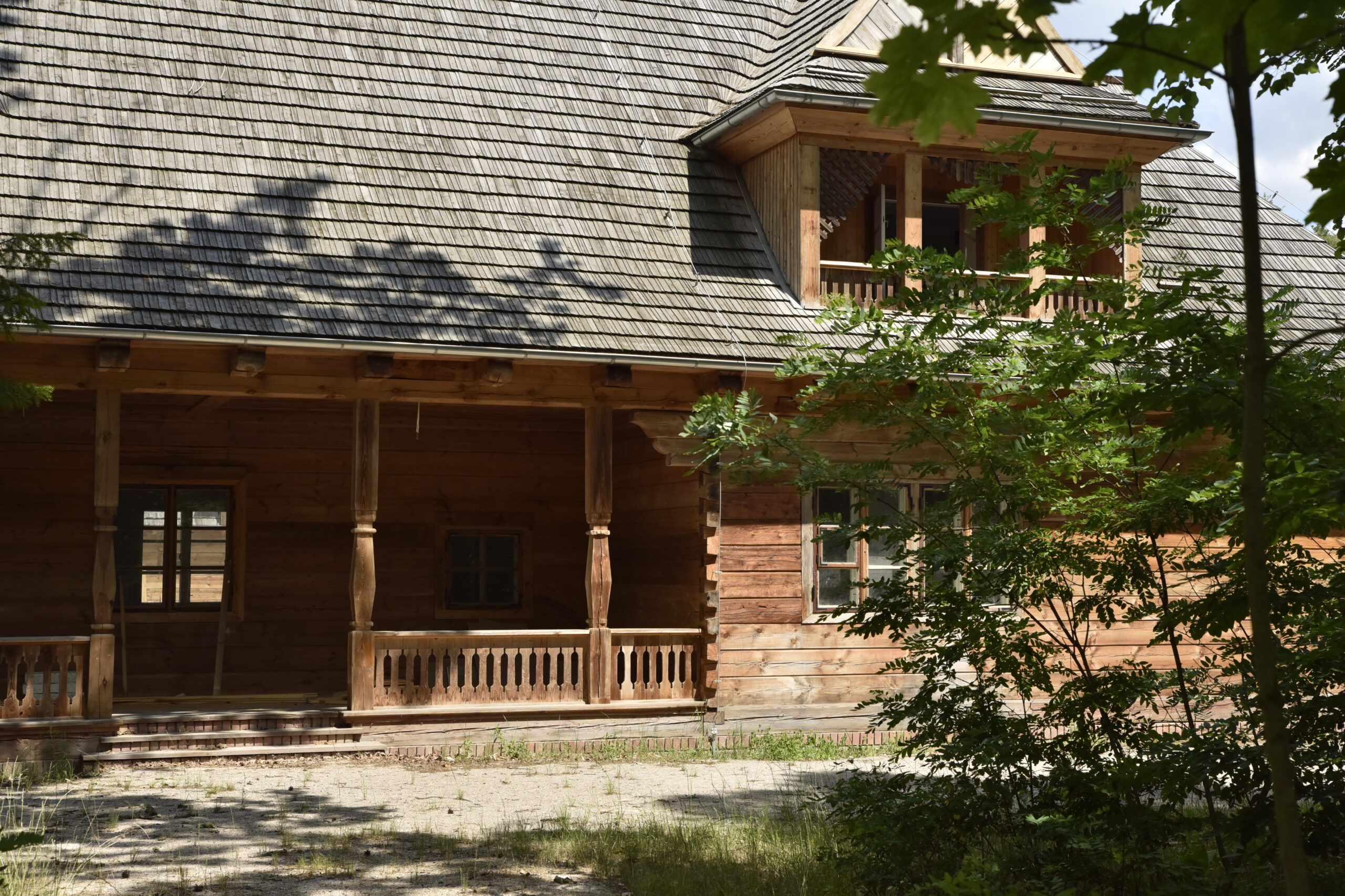 remont dachu -naprawy więźby, wymiana deskowania, warstwy izolacji przeciwwilgociowej, pokrycie gontem łupanym remont inst.i odgromowej -wymiana, w tym zwodów na dachu i uziomów remont inst. elektrycznych i słaboprądowych, montaż instalacji oświetlenia awaryjnego, syst. sygnalizacji pożaru oraz monitoringu CCTV remont inst. wod-kan wymiana instalacji grzewczych na ogrzewanie płaszczyznowe sufitowo-ścienne zasilone gruntowymi pompami ciepła wykonanie inst. wentylacji mechanicznej z rekuperacją Użyte materiały są analogiczne do materiałów historycznych oraz wprowadzone tradycyjnymi technikami rzemieślniczymi, utrzymano integralność techniczną i estetyczną budynków Utrzymano ok. 80% ścian zrębowych w budynku Urzędu Leśnego, powyżej 95% konstrukcji stropów i więźb, a także murowanych ścian przyziemia. Całość stolarki okiennej i drzwiowej, schodów i drewnianych detali arch. elewacji poddano konserwacji, jedynie nieliczne el. skopiowano w oparciu o posiadane wzorce. Przywrócono pierwotny układu i wygląd obiektów stosownie do wyników badań archiwalnych i arch.